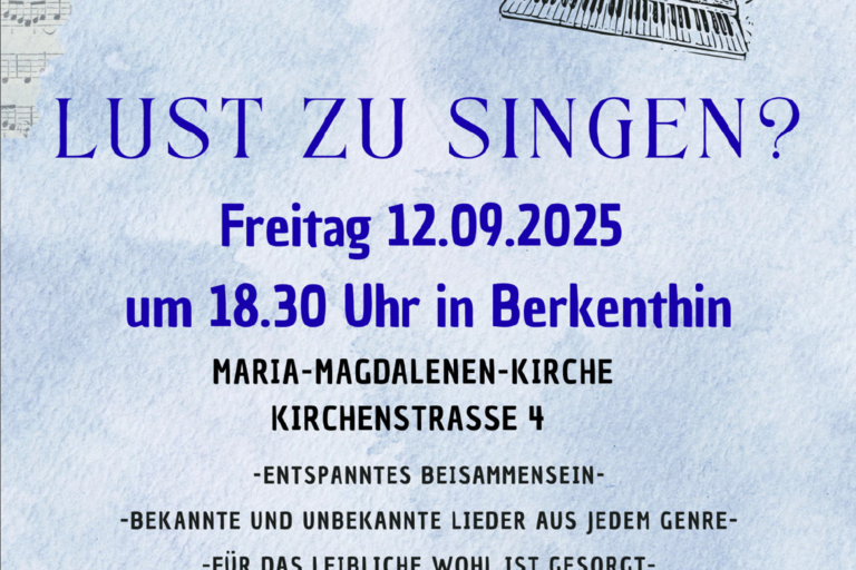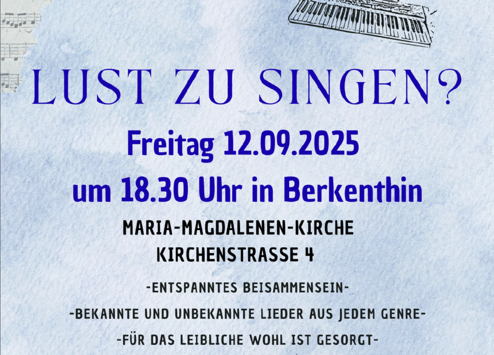 Ort und Zeit: Die Proben finden statt jeweils mittwochs ab 18 Uhr im Pastorat in Berkenthin statt.