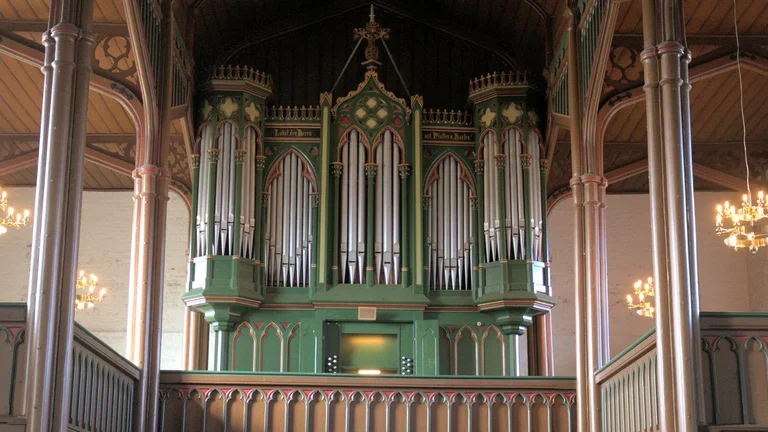 Die ursprüngliche Orgel wurde 1890 von Marcussen Orgelbau errichtet. Über die Jahre gab es diverse Umbauten und teilweise starke Veränderungen der Disposition, von denen insbesondere der Umbau von 1978 den ursprünglichen Charakter des Instrumentes völlig veränderte. Ab 2007 plante die Kirchengemeinde an einer Rekonstruktion des Originalzustandes der Orgel. Nachdem die finanziellen Schwierigkeiten überwunden werden konnten, führte Paschen Orgelbau die Sanierung ab 2011 durch. Dabei wurden teilweise alte Pfeifen aus abgebrochenen Marcussen-Orgeln aus anderen Kirchen verwendet. Seit 2011 verfügt die Orgel wieder über 12 Register, die auf zwei Manuale und Pedal verteilt sind.