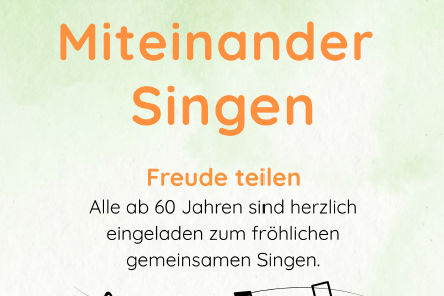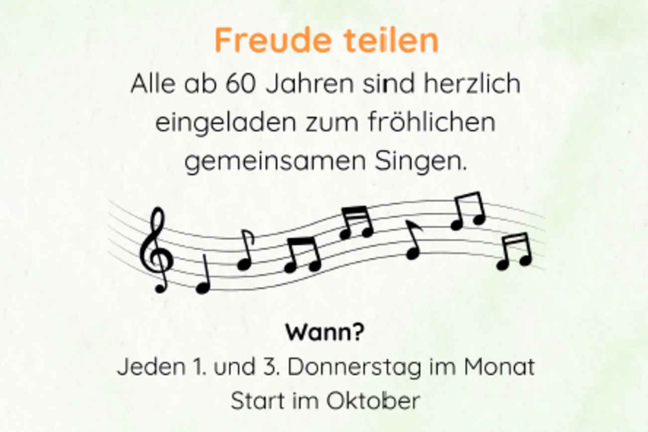 Unter dem Motto „Freude teilen“ startet ab Oktober ein neues Angebot für alle ab 60 Jahren: gemeinsames, fröhliches Singen in geselliger Runde.